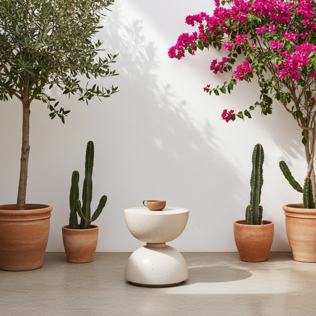Occupe l'espace avec une présence discrète tout en étant visuellement captivante. Sa conception ingénieuse permet de l'utiliser comme une table d'appoint dans votre salon, ou comme un accent charmant sur votre terrasse, patio ou balcon.